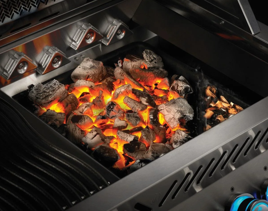 Napoleon offers a wide range of compatible accessories, including a premium grill cover, various rotisserie kits, specific grilling tools, cleaning brushes, and even specialized cooking inserts like a cast iron griddle or wok. Combined with the standard rear burner and charcoal tray, the Napoleon Phantom Rogue takes on the role of an amazing versatile multi-cooker. Crispy roasts, charcoal infused chicken or perfectly seared steaks or veges all-in-one with accessories.