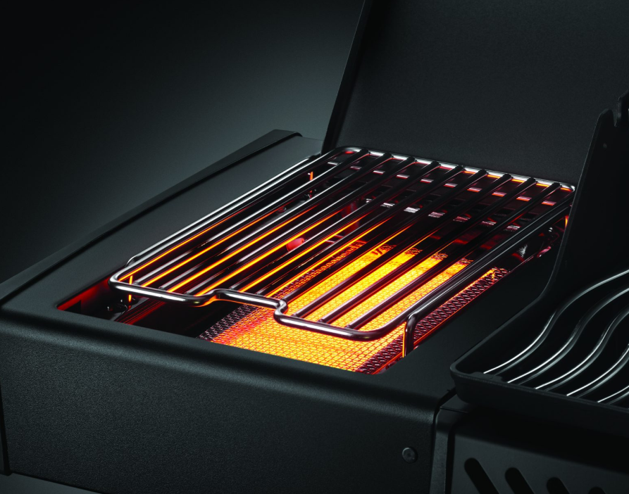 Completing the trifecta of cooking zones is the rear burner, an infrared rotisserie burner. If you've never roasted a chicken, prime rib, or even a pineapple on a rotisserie, or enjoyed anything spit roasted, you're missing out. This burner ensures even, radiant heat, resulting in incredibly juicy and uniformly cooked food. It’s set high enough to allow ample clearance for larger roasts, transforming your grill into a full-fledged outdoor oven. Please see more on accessories below to take full advantage of Phantom Rogue Pro-S features.