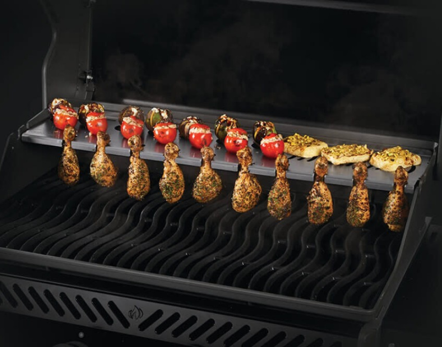 This isn't your grandma's warming rack. Napoleon's innovative multi-functional design allows it to also hold chicken drumsticks upright or even function as a slow-roasting area, expanding your cooking real estate and versatility significantly. It's a subtle but genius touch that makes a real difference.