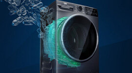 This manufacturer employs recycled plastic bottles for the tubs of this machine. In 2019 and 2020 alone, a total of 398 tons of recycled plastics found a new life in these products