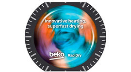 Beko RapiDry allows you to choose between drying quickly and drying energy efficiently. You can dry a full nine kilogram load 20 percent faster in Hybrid mode or a 5 kilogram load 27 percent faster.