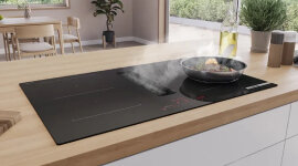 | Features | Design: 4 Zone Ceramic Cooktop with an Integrated downdraft Exhaust system built in. Direct Select: DirectSelect allows you to select the cooking zones and set the specific power level you want. Power Levels: precisely adapt the heat with 17 power levels (9 main levels and 8 intermediate levels). Perfect Fry Plus: no more worrying about scorching. Combi Zone: combine two induction cooking zones to heat large cookware. Auto On Function: ventilation turns on automatically when the hob heats up. Home Connect: easily find the right temperature setting for a certain dish via the Home Connect app. Liquid Safety Collector: Liquid safety collector with an additional capacity of 700ml for more severe accidental situations. Dishwasher safe. Ducting and Recirculation Kits: Both kits are available directly through Bosch Home Appliances Spare Parts Division. Cooking Zones: 2 Combi zones: use bigger cookware by connecting two classic cooking zones into one large zone. |