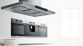 | Features | The wall-mounted rangehood: a functional design element in the kitchen. ● Extraction rate: at 964 m3/h, it quickly ensures optimal kitchen air quality. ● PerfectAir sensor: automatic control of settings for maximal extractor performance with minimal noise. ● Especially quiet: high performance at just 64 dB. ● LED lighting: for perfect, energy-efficient illumination of the cooktop. ● Intensive speed setting with reset: automatically resets the hood to regular speed setting after 6 min. Design & Innovation ● Box design ● Appliance colour: Stainless steel ● Electronic controls via TouchControl with lightline ● PerfectAir sensor ● Cooktop-based hood control (with matching cooktop) Power and Mode of Operation ● 3 Power levels + 2 intensive levels ● Extraction rate according to EN 61591 ø 15 cm: max. Normal use 601 m3/h, Intensive 964 m3/h ● Extraction rate in recirculation mode: Max. normal use: 362 m3/h, Intensive: 428 m3/h ● Ducted and recirculated-air operation ? EcoSilence BLDC brushless motor ● Noise min./max. Normal Level: 45/64 dB ● Noise max. Intensive setting: 73 dB ● Noise level in recirculation mode: Max. normal use: 73 dB(A) re 1 pW (60 dB(A) re 20 µPa sound pressure ● Energy Efficiency Class: A+ (at a range of energy efficiency classes from A++ to E) ● Average Energy Consumption: 33.9 kWh/year ● Power rating: 265 W Comfort & Convenience ● One-way flap: prevents outside air from entering your kitchen ● Dishwasher safe metal grease filters ● Saturation display for filters ● Stainless steel filter covers, dishwasher safe ● Intensive operation automatic revert - 6min ● Automatic run on for Automatic run on - 10 min ● Additional sound insulation mats for optimised sound absorption ● 3 x 1.5 Watt LED Lights ● SoftLight with dimming function |
