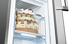 The extra-high BigBox freezer drawer makes stacking frozen containers simple and provides generous space for larger items like pizzas or gateaux, ideal for storing bulky foods or special occasion cakes.