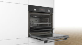 Easy-to-clean enamel surfaces and a smooth interior cavity help keep maintenance to a minimum. Finished in sophisticated black with Bosch’s renowned attention to detail, this Series 2 oven strikes the perfect balance between reliable performance, thoughtful features and a timeless look that feels at home in any space.