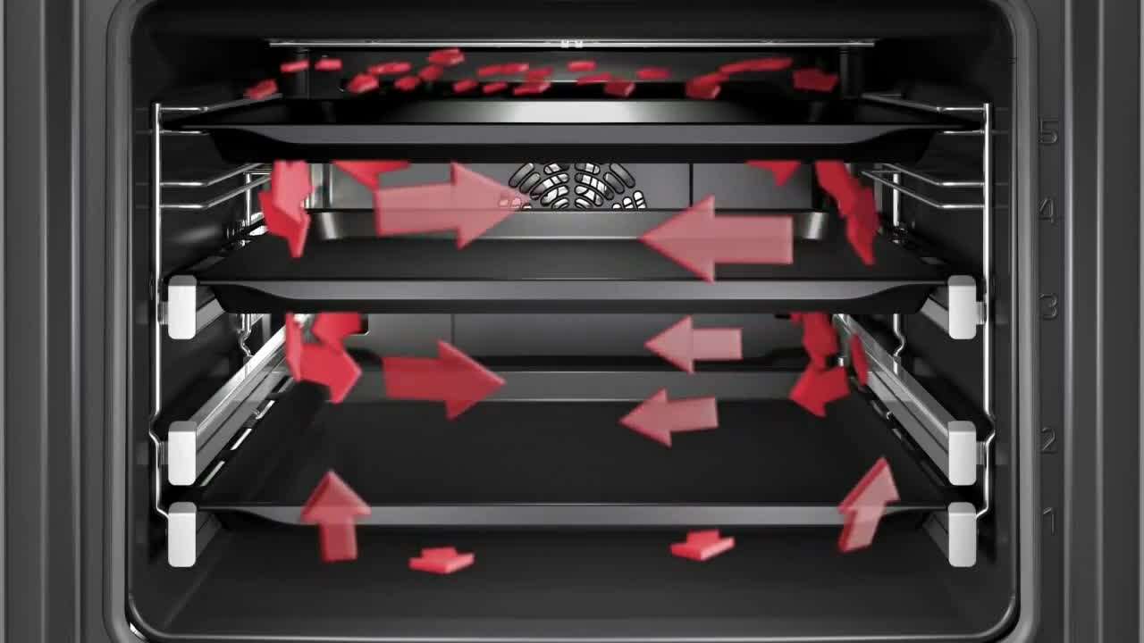 Bosch's 3D HotAir feature allows you to bake or roast on up to three levels at once. Optimal heat distribution on every level ensures evenly cooked food.