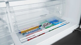 The Electrolux 609L French Door Fridge with a natural stainless steel finish will not only look good in your kitchen, it is engineered to be practical too. Organising your fridge is no longer a tedious task thanks to the slide-back and flip-up shelving. This lets you fit tall or bulky items when needed. The SmartSplit door design makes it easy to reach for what you need and see everything at a glance. You can keep smaller items such as fruit and chocolate within easy reach in the SnackZone compartment. You don’t have to worry about your wilted greens and overripe fruits because the TasteLock crisper ensures your produce stays fresh for longer. When you need to quench your thirst, a refreshing glass of water or crushed ice is only a touch of a button away.