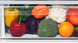 Keep your fruit and vegetables fresher for longer thanks to the full-width crisper bin located at the base of the refrigerator.