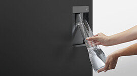 The slimline dispenser makes it easy to fill almost any sized jug or vessel with cool filtered water, while fresh ice is always available for you in a dedicated freezer bin.