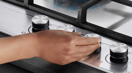For added safety, this gas cooktop features a flame failure device. This feature stops the supply of gas to the burners if the flame is extinguished.