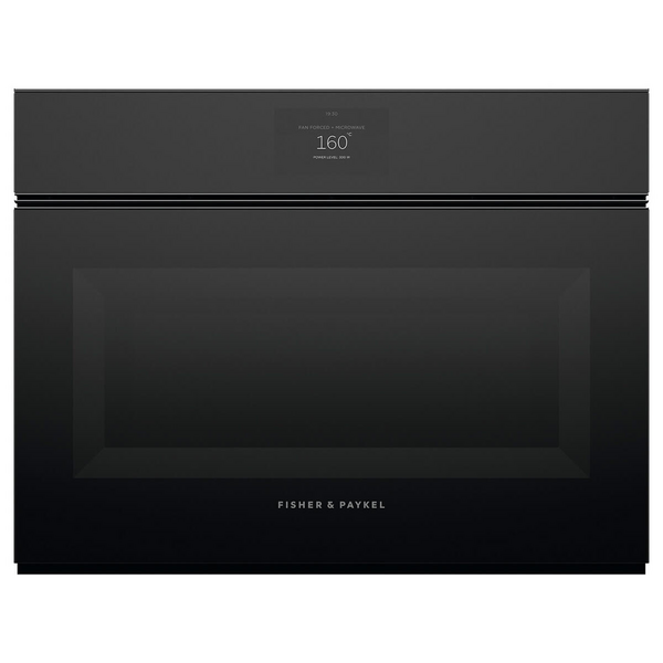 Fisher & Paykel 60cm Series 9 Minimal Compact Combi-Microwave Oven Black Glass OM60NMLB1