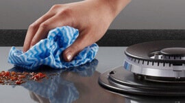 Designed with a single sheet of ceramic glass and sealed burners, this cooktop makes cleaning refreshingly simple. Just lift away the cast iron trivets and wipe down the smooth surface—no tricky crevices or parts to navigate.