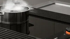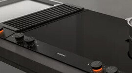 Create your ideal cooking setup with the Gaggenau 200 Series Vario Flex Induction Cooktop. Pair it with downdraft ventilation for a sleek, modern kitchen. Enjoy smart features like the frying sensor, pot detection, and nine power levels, all designed to make cooking easier and more efficient. The cooktop’s stylish design fits beautifully in any space.