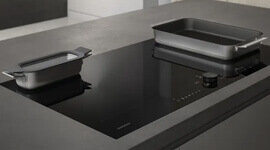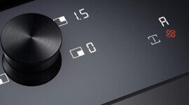 The sleek cooktop boasts a bicoloured display and stainless steel controls, including an innovative Magnetic Twistpad for easy and precise control. Activate the frying sensor function to maintain perfect temperatures in your pans or use the Professional Cooking function to move pans across predefined heat areas without adjusting the controls. Available in 60 and 90 cm versions, this frameless or stainless steel cooktop seamlessly blends functionality with sophisticated design.