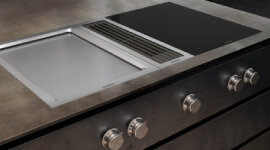 This cooktop’s smooth hard-chromed metal surface allows for quick and easy cleaning, similar to cleaning a cast pan.