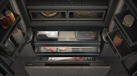 Keep your food at its freshest with innovative storage options. One chilled drawer and two fresh climate drawers allow manual temperature and humidity adjustments or use dedicated cooling programmes tailored to specific food types. From fruits and vegetables to delicate meats, every ingredient is stored in ideal conditions, ready to inspire your next culinary masterpiece.