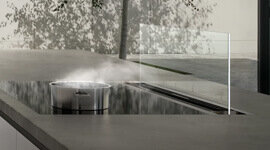 The Gaggenau 90cm 200 Series Downdraft Rangehood features a transparent ventilation screen and ambient lighting through glass edges, blending seamlessly into your kitchen. When not in use, it lowers completely into the worktop, offering an elegant, unobtrusive solution that maintains the sleek aesthetics of your modern kitchen.