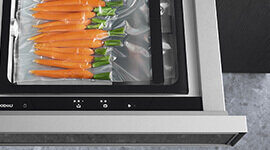 Though unseen, its function is exceptional. The drawer enables professional vacuum sealing for sous-vide cooking, portioning, marinating, and extending storage life with absolute control. It supports a variety of bag sizes and ingredients, ensuring flexibility for both everyday use and ambitious culinary preparation. The result is food preserved with care and ready for either gentle steam cooking or long-term storage.