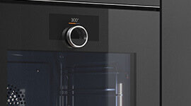 A concealed full-surface grill and powerful bottom heat, reaching 300 °C on the baking stone, deliver flawless results. Automatic programs, air-fry mode and a core temperature probe bring precision with ease. Pyrolytic self-cleaning, warm diffused lighting and one-touch door opening complete an oven of understated capability.