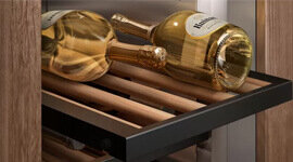Ensure optimal storage conditions with the Gaggenau 400 Series Vario Wine Climate Cabinets. Up to three separate temperature zones, adjustable between 5 °C and 20 °C, mimic a long-term cellar environment. Constant humidity, sound insulation, vibration suppression, activated charcoal filters, and UV-protected glass doors provide a disturbance-free sanctuary, keeping your wine in pristine condition.