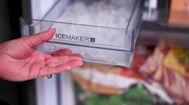 Whether you’re entertaining or need to cool down on a hot day, you can have quick and easy access to ice when you need it. The double twist release ice cube tray and collection bin creates and stores a generous amount of ice for the entire household.