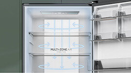 Multi-Zone Air evenly circulates cool air to every corner of your fridge. By maintaining a stable temperature, this cooling system creates an ideal food storage environment, for lasting freshness.