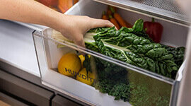 Two humidity-controlled vegetable bins offer plenty of space to store your fresh fruit and vegetables, creating the ideal conditions to help them last for longer.