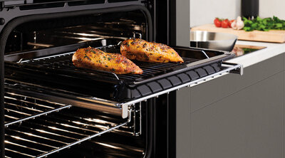 Designed for convenience and safety, the telescopic runners allow for the easy drawing out of the oven racks, so you can easily check on the progress of your dishes or remove them from the oven.