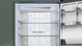 Multi-Zone Air evenly circulates cool air to every corner of your fridge. By maintaining a stable temperature, this cooling system creates an ideal food storage environment, for lasting freshness.