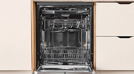 For effective drying, the dishwasher door automatically opens at the end of the cycle to help remove excess moisture, while an air curtain channels steam out into the room safely, protecting cabinetry.