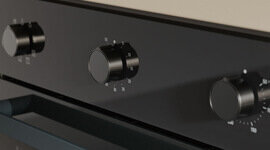The sleek black control dials are designed for simplicity and style, giving you confident command over your cooking. A mechanical minute timer adds a practical touch, making it easy to keep track of meals with a clear, tactile interface that’s intuitive to use.