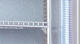 The fridge includes full-length LED lighting along both doors, offering brilliant interior illumination to highlight product displays. Triple-glazed glass doors provide excellent insulation, maintaining stable internal temperatures and reducing energy consumption, even in warm or high-use settings. Fully adjustable shelves allow users to customise the interior layout, maximising display impact and accommodating varying product sizes.