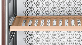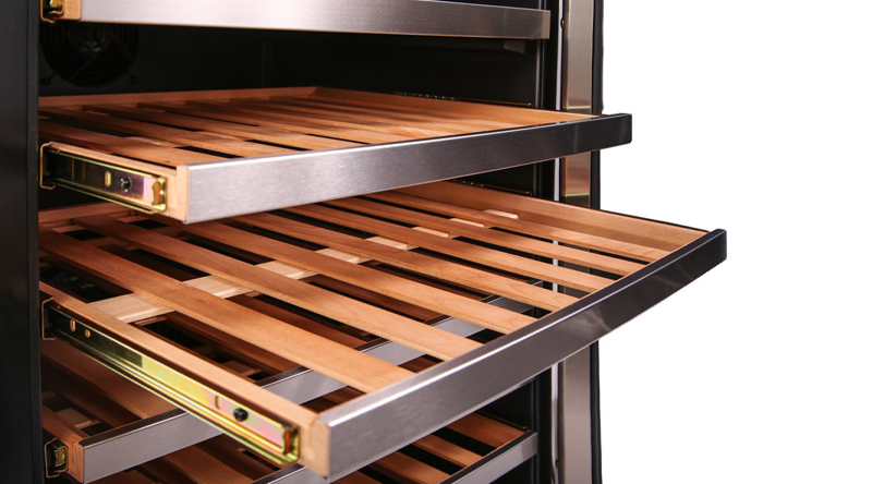 This wine fridge is equipped with premium wooden shelves. These shelves open up with smooth ball bearing runners and help reduce vibration to retain the flavour and aroma of your wine. This design creates an attractive and easy-to-organise display for your wine.