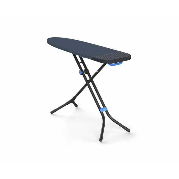 Introducing the Joseph Joseph Glide Eas-Store Black Ironing Board with Advanced Cover. This ironing board is designed to make your ironing experience easier and more efficient. The 100% cotton top-layer features a built-in, heat-resistant silicone iron rest, ensuring that your iron stays in place and doesn't damage the board. The large handle on the back serves a dual purpose - it makes carrying the board a breeze and also acts as a secure hanging point when not in use. The height of the board can be adjusted to seven different positions using the release lever, accommodating users of different heights. The Glide Eas-Store Black Ironing Board comes with an advanced, multi-layer cover with DripShield™ Technology, making it perfect for handling large volumes of ironing or for use with steam generator irons. The cover is also quick and easy to change, thanks to its cord toggle. With its sleek black design and practical features, this ironing board is a must-have for any household. Say goodbye to the hassle of ironing with the Joseph Joseph Glide Eas-Store Black Ironing Board with Advanced Cover.
