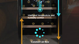 This wine fridge has 24 hours continuous detection of internal temperature and humidity changes. It also has a 180-degree door rotation with an auto-locking system for convenient beverage retrieval.
