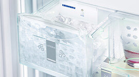 NoFrost protects Liebherr freezer compartments from unwanted icing, which consumes a lot of energy and can be expensive. NoFrost means no more tedious and time-consuming defrosting of the freezer.