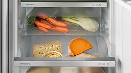 Sensitive food stays fresher for longer in Liebherr's BioFresh safes. A temperature of 0°c provides ideal storage conditions for meat or fresh milk, with higher humidity levels in the Fruit and Vegetable safe.