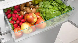 The adjustable opening on the crisper drawer ensures that humidity is retained efficiently. This results in fruit and vegetables staying fresh and crisp for noticeably longer.