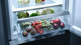 The dedicated produce drawer creates the ideal environment for fruits and vegetables, with adjustable humidity that helps maintain their natural crispness. Whether it is herbs, greens or berries, your ingredients stay vibrant for longer, ready to nourish every meal.