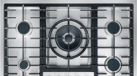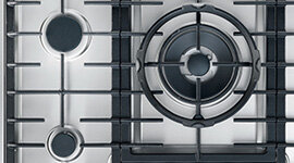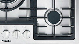 All Miele gas cooktops are equipped with GasStop functionality for maximum safety. If the gas flame is temporarily extinguished, e.g. because a pan boils over or due to a draught, a flame failure device will stop the supply of gas.