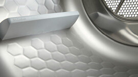 Thanks to the unique honeycomb structure, the laundry is lifted higher in the rotating drum. Items hover for longer in the warm air stream which results in more uniform drying. Air pockets form in the individual hexagons and cushion the fall of laundry. This ensures that your laundry is treated much more gently and is less creased after drying making ironing easier. It also simplifies ironing considerably.