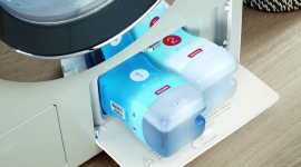 There’s no need to measure out detergent each time you want to put on a load. Fill the two included cartridges with detergent and the machine will do the dispensing automatically, at just the right time, over two phases.