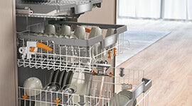Experience the brilliance of short programmes, delivering sparkling results in a short amount of time. The ComfortClose door offers smooth and effortless opening and closing, while the BottleClean feature ensures even the tallest containers are thoroughly cleaned. For those extra tough loads, the IntenseZone option provides enhanced cleaning performance. With its efficient capabilities and superior cleaning technology, the Miele Freestanding Dishwasher is the epitome of modern sophistication and efficiency.